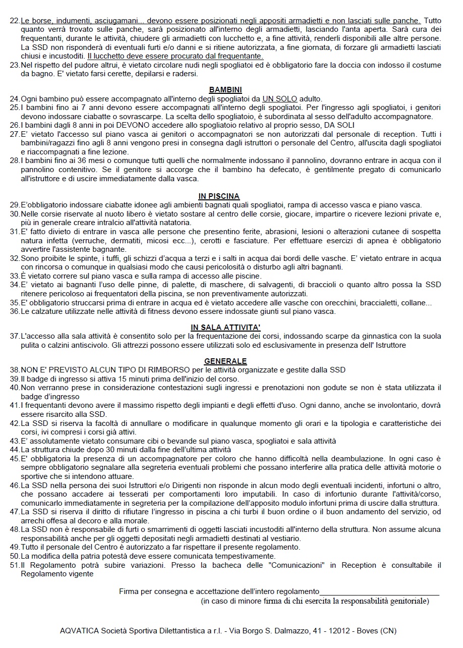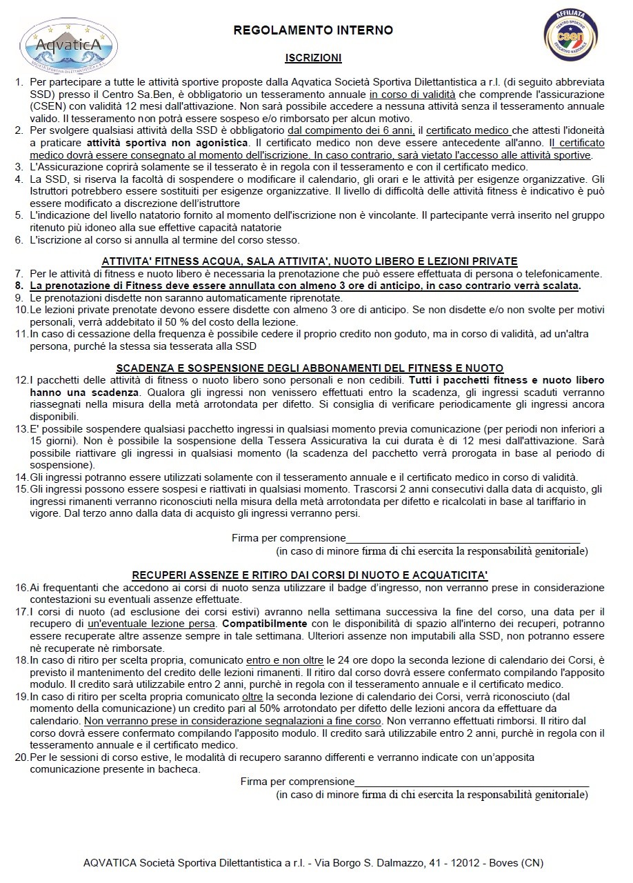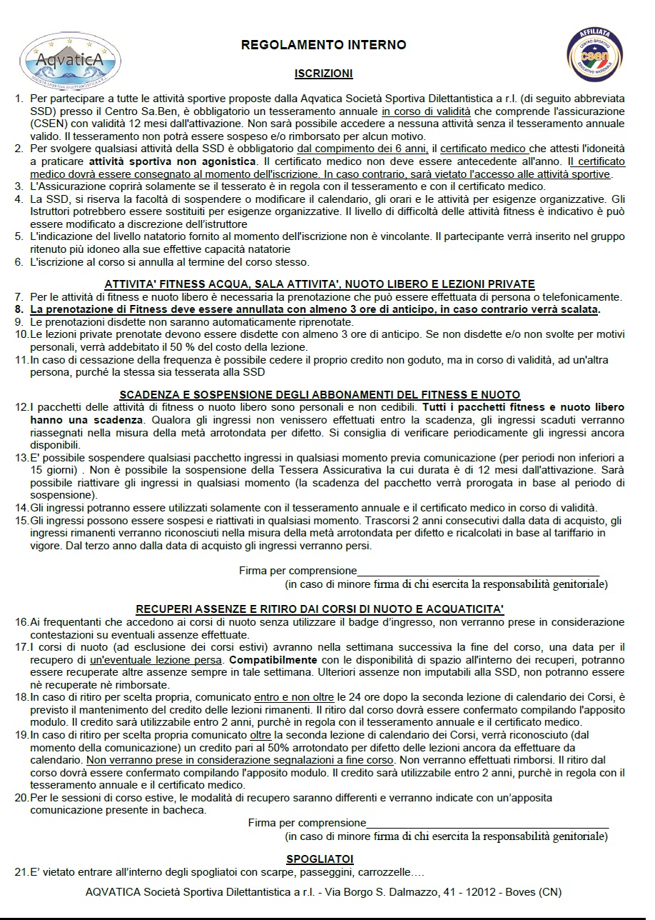 L'ingresso alle attività sportive organizzate dall' AQVATICA S.S.D a R.L è riservato ai Tesserati